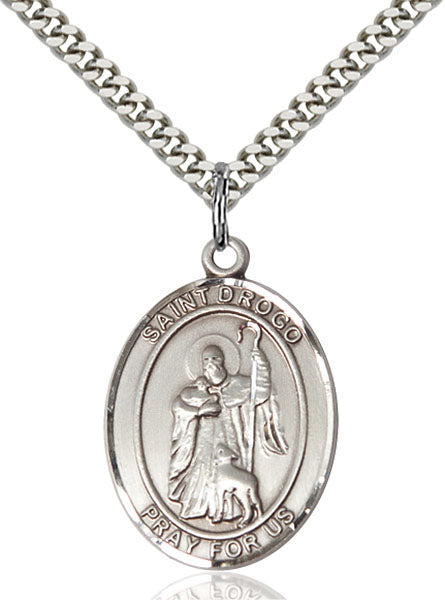 - Sterling Silver St. Drogo Pendant, Stainless Silver Heavy Curb Chain