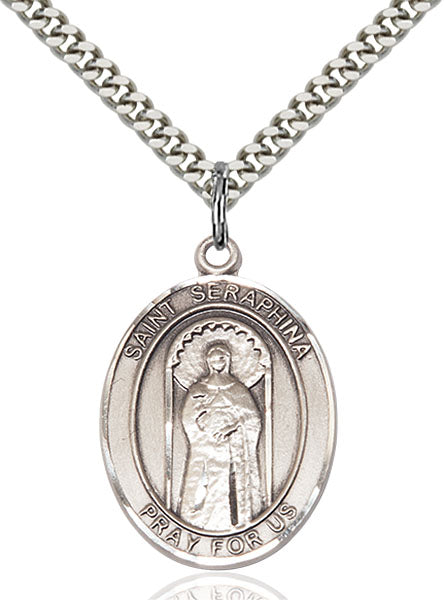 - Sterling Silver St. Seraphina Pendant, Stainless Silver Heavy Curb Chain