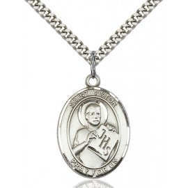 • Sterling Silver St. Viator of Bergamo Pendant, Stainless Silver Heavy Curb Chain