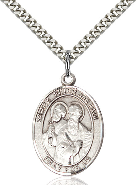- Sterling Silver St. Peter Pendant, Stainless Silver Heavy Curb Chain
