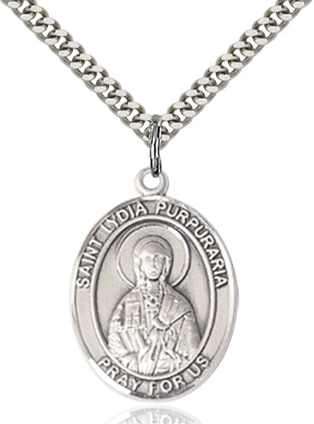 - Sterling Silver St. Lydia Purpuraria Pendant, Stainless Silver Heavy Curb Chain