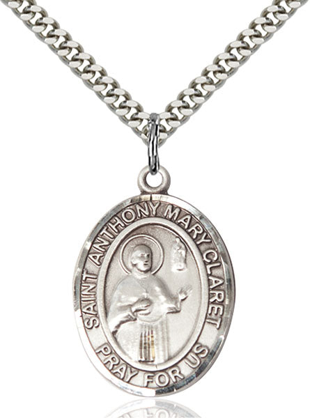 - Sterling Silver St. Anthony Mary Claret Pendant, Stainless Silver Heavy Curb Chain