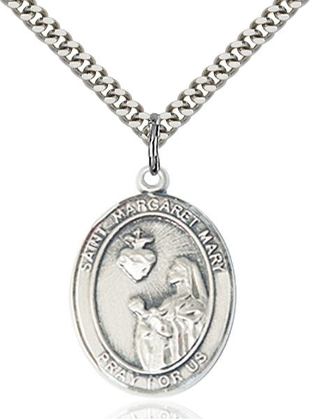 • Sterling Silver St. Margaret Mary Alacoque Pendant, Stainless Silver Heavy Curb Chain