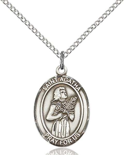 - Sterling Silver St. Agatha Pendant, Sterling Silver Lite Curb Chain