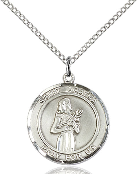 - Sterling Silver St. Agatha Pendant, 18 inch Sterling Silver Curb Chain
