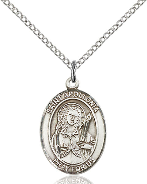 - Sterling Silver St. Apollonia Pendant, Sterling Silver Lite Curb Chain