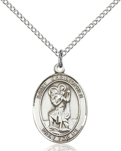 - Sterling Silver St. Christopher Pendant, Sterling Silver Lite Curb Chain