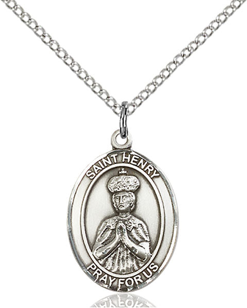 • Sterling Silver St. Henry II Pendant, Sterling Silver Lite Curb Chain