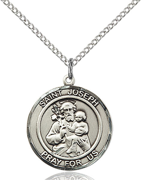 - Sterling Silver St. Joseph Pendant, 18 inch Sterling Silver Curb Chain