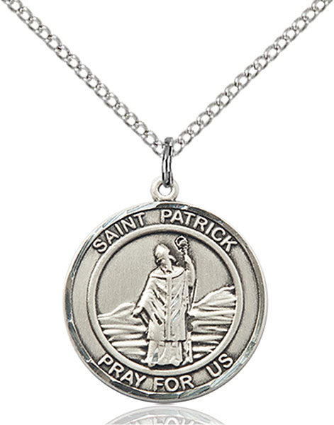 • Sterling Silver St. Patrick Pendant, 18 inch Sterling Silver Curb Chain