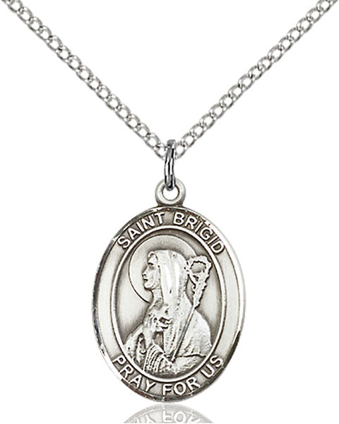 - Sterling Silver St. Brigid of Ireland Pendant, Sterling Silver Lite Curb Chain