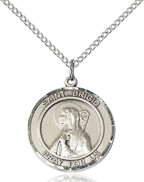 - Sterling Silver St. Brigid of Ireland Pendant, 18 inch Sterling Silver Curb Chain