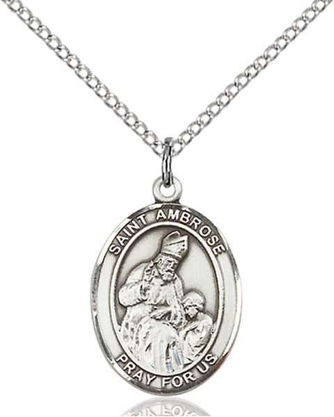 • Sterling Silver St. Ambrose Pendant, Sterling Silver Lite Curb Chain