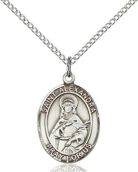 - Sterling Silver St. Alexandra Pendant, Sterling Silver Lite Curb Chain
