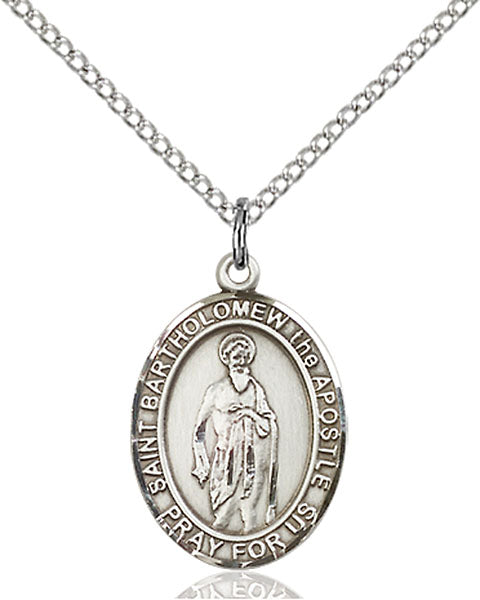 • Sterling Silver St. Bartholomew the Apostle Pendan, Sterling Silver Lite Curb Chain
