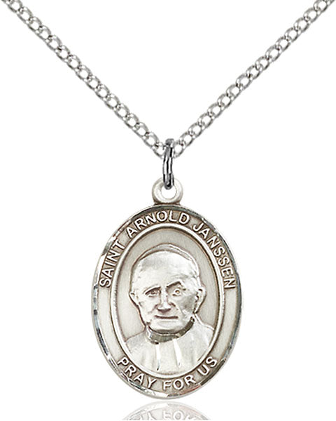 - Sterling Silver St. Arnold Janssen Pendant, Sterling Silver Lite Curb Chain