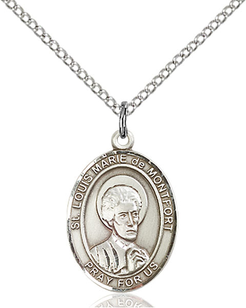 - Sterling Silver St. Louis Marie De Montfort Pendan, Sterling Silver Lite Curb Chain