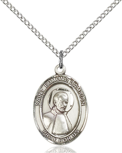 - Sterling Silver St. Edmund Campion Pendant, Sterling Silver Lite Curb Chain