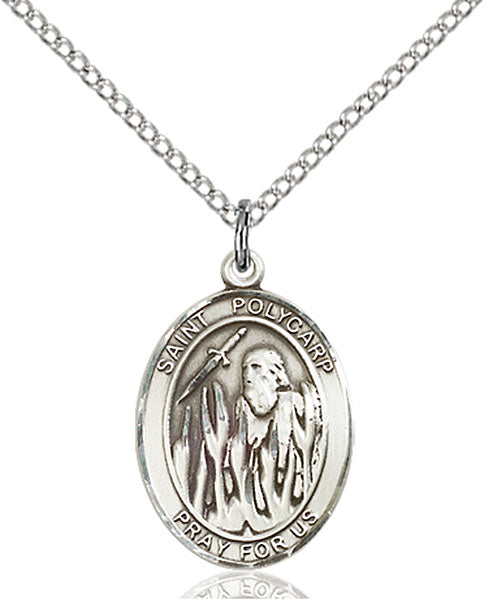 - Sterling Silver St. Polycarp of Smyrna Pendant, Sterling Silver Lite Curb Chain