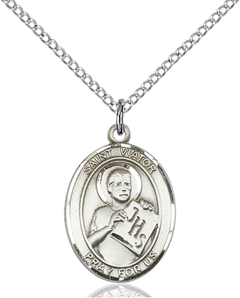 • Sterling Silver St. Viator of Bergamo Pendant, 18 inch Sterling Silver Curb Chain