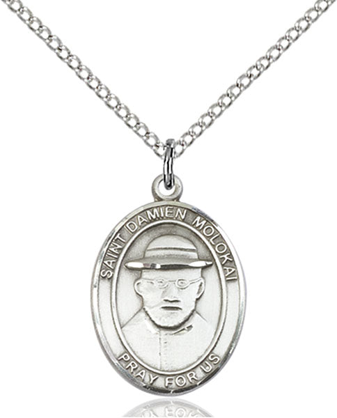 - Sterling Silver St. Damien of Molokai Pendant, 18 inch Sterling Silver Curb Chain