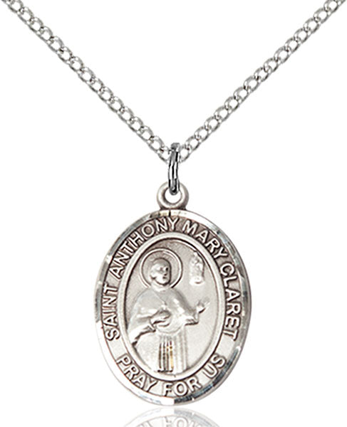 • Sterling Silver St. Anthony Mary Claret Pendant, 18 inch Sterling Silver Curb Chain