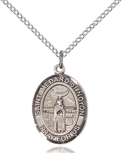 - Sterling Silver St. Medard of Noyon Pendant, 18 inch Sterling Silver Curb Chain