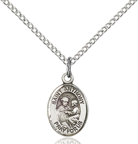• Sterling Silver St. Anthony of Padua Pendant, Sterling Silver Lite Curb Chain