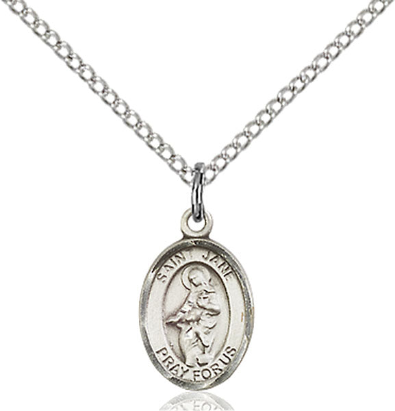• Sterling Silver St. Jane of Valois Pendant, Sterling Silver Lite Curb Chain