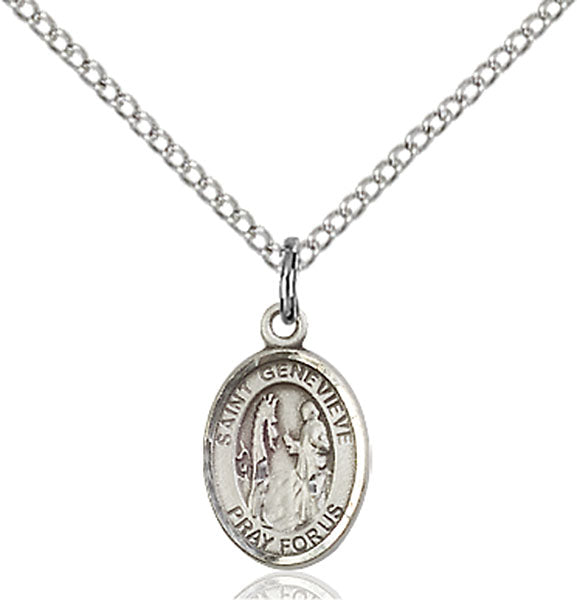 - Sterling Silver St. Genevieve Pendant, Sterling Silver Lite Curb Chain