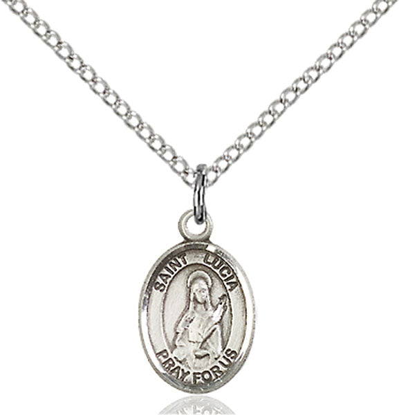- Sterling Silver St. Lucia of Syracuse Pendant, Sterling Silver Lite Curb Chain