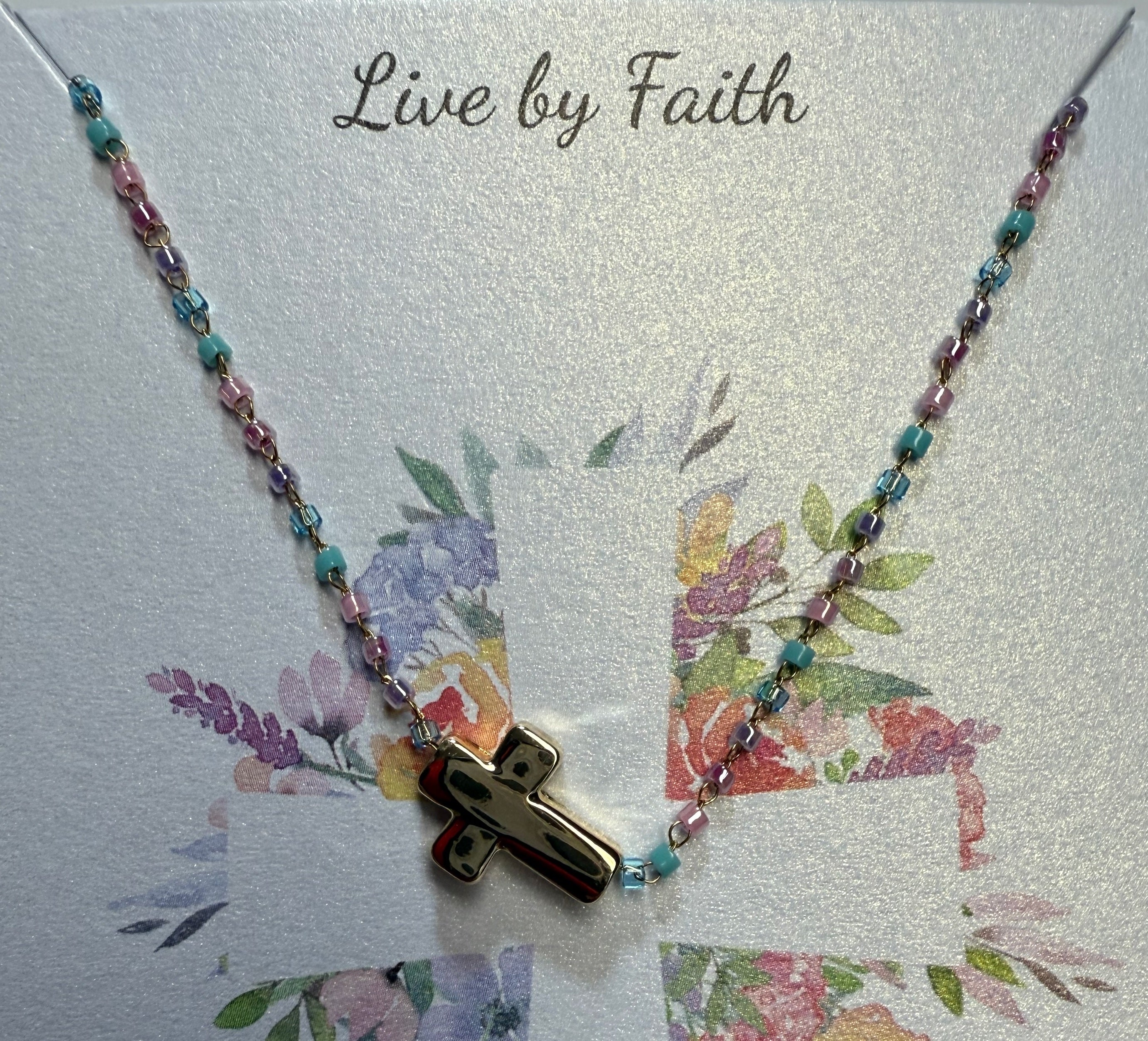 18K Gold Plate Side Cross Necklace 15" + 1" Extender.