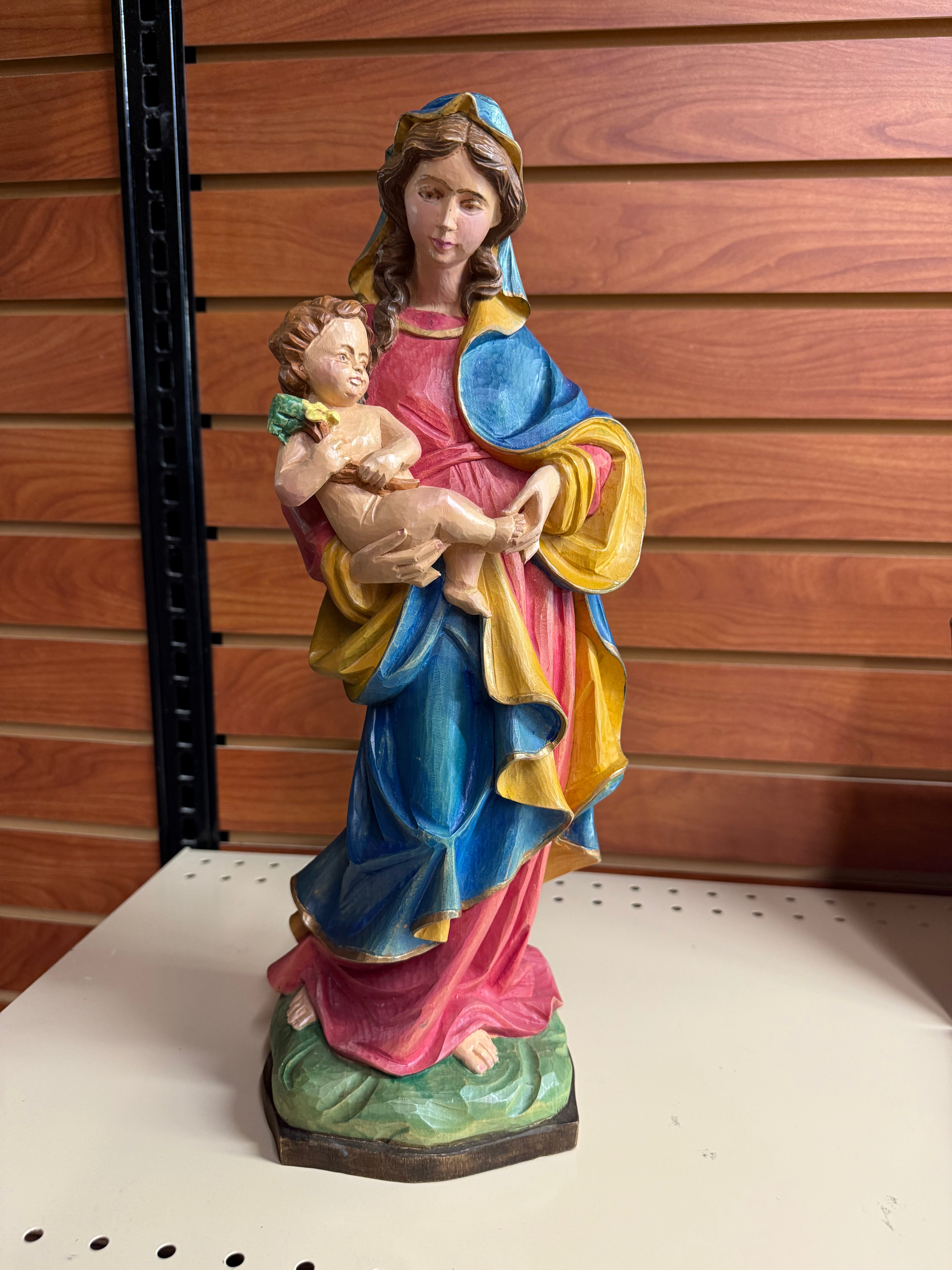 Beautifully hand carved wooden Madonna and Child Statue -16" Tall, Hand Painted