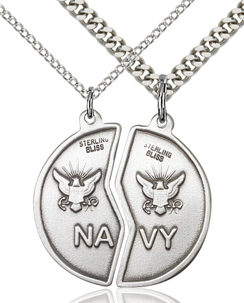 - Sterling Silver Miz Pah Coin Set / Navy Pendant, Stainless Silver Heavy Curb Chain