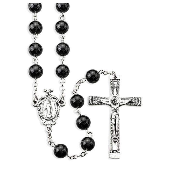 - 8mm Genuine Onyx Stone Bead Rosary.