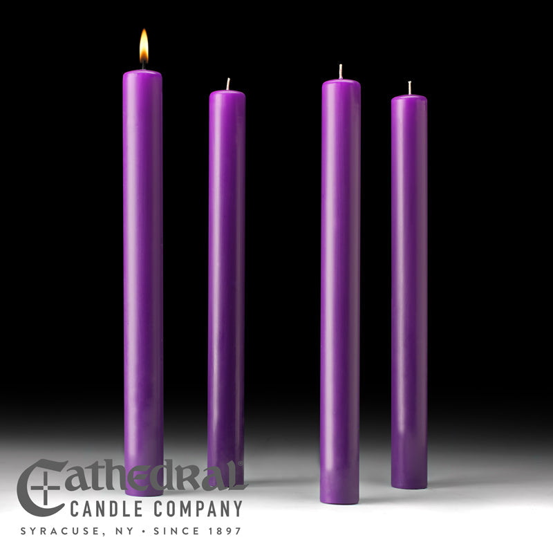 Made especially for church Advent wreaths, each candle is colored with a hand dipped layer of richly tinted pigments. This extra step gives these Advent candles a unique, lustrous finish and a brighter, longer-burning flame.