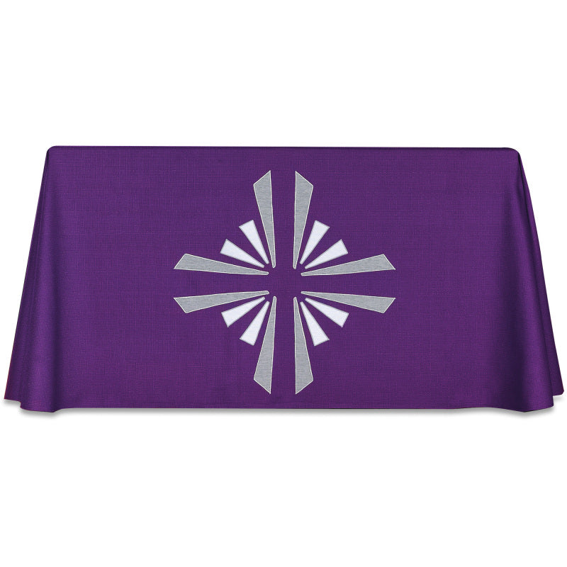 The Laudian price increases per inch past the length of 71 inches. CALL FOR PRICING & SIZES!!! This inspiring laudian frontal covers the altar on all sides. The fabric is reinforced with backing material and has rounded corners. The hem is finished with a ribbon on the inside.