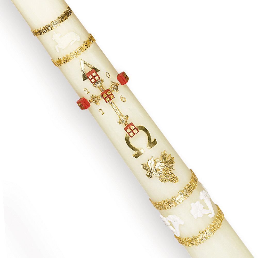 Fully Ornamented Paschal Candle - 51% Beeswax - Gold - ROOT-PASCHAL-#5