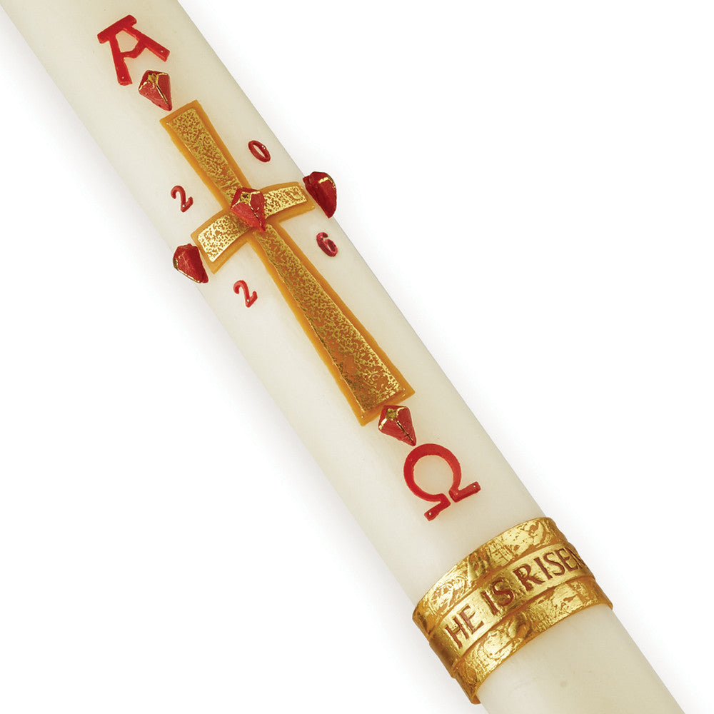 He Is Risen Paschal Candle - 51% Beeswax - Red - ROOT-PASCHAL-#50R