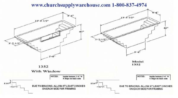 We use only the finest and most innovative materials on the market to make our products. Gelcoat, resin, and fiberglass are chemically bonded together to prevent peeling and rotting. Baptistries may take up to 4 weeks to be built.