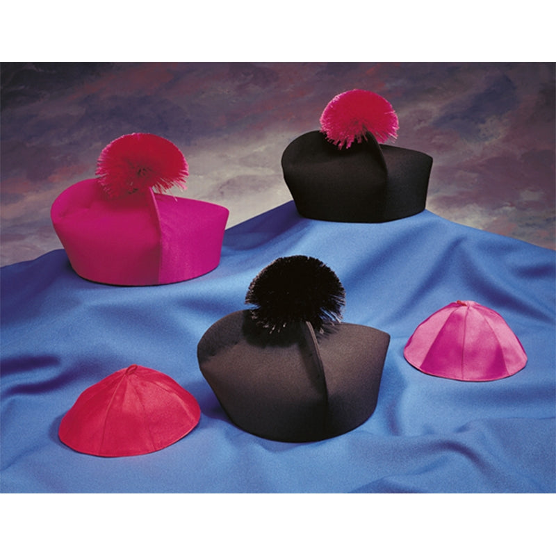 Custom birettas in many fabrics and trims including black, white and red--call for details and prices.