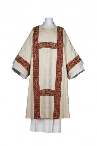 The chasubles have a Gothic cut with a 61" width and 53" length and include an inner stole. 100% Lightweight Wool.