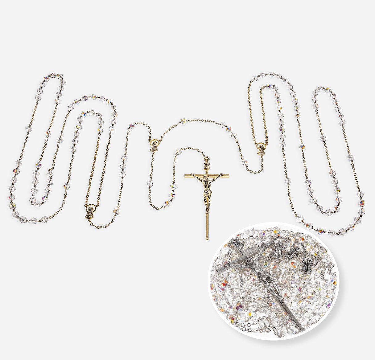 Wedding Lasso Rosary - 8mm Clear Beads, Gold Finish Corpus
