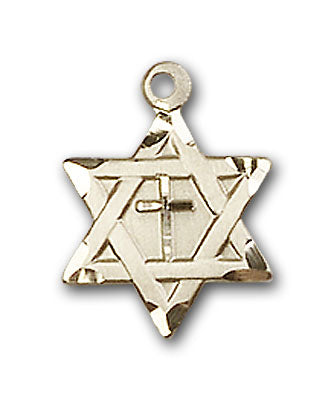 - 14kt Gold Star of David W/ Cross Medal