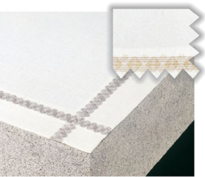 Altar Cloth made of Cathedral Fabric(10), 55% linen/45% Polyester with White/Grey or Gold/White washable embroidery on both side drops. These easy to maintain altar cloths for main and side altars are always custom-made. The 1 1/2" hem is finished with a matching ribbon on the inside. There are four types(see chart below). Priced per yard of finished altar cloth. Click on the sizing chart below for more Instructions. This product is made in Belgium, it can take 3-4 weeks for delivery!