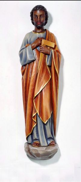 308-BF African American St Joseph the Worker - Wood Carved Statue - From Demetz Art Studio in Italy Hand Carved in Linden Wood, full round figure, shown in traditional colors. Available in multiple sizes and in fiberglass.