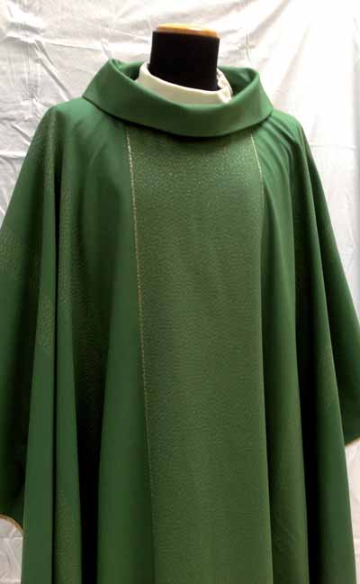Chasuble - Roll collar with gold lines woven into the fabric and one cross embroidered in front and back.