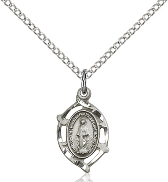 • Sterling Silver Miraculous Pendant, Sterling Silver Lite Curb Chain