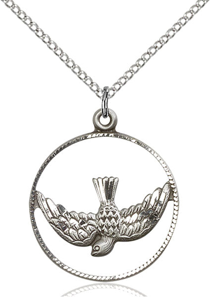 - Sterling Silver Holy Spirit Pendant, Sterling Silver Lite Curb Chain