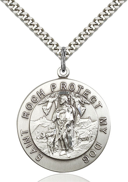 • Sterling Silver St. Roch Pendant, Stainless Silver Heavy Curb Chain